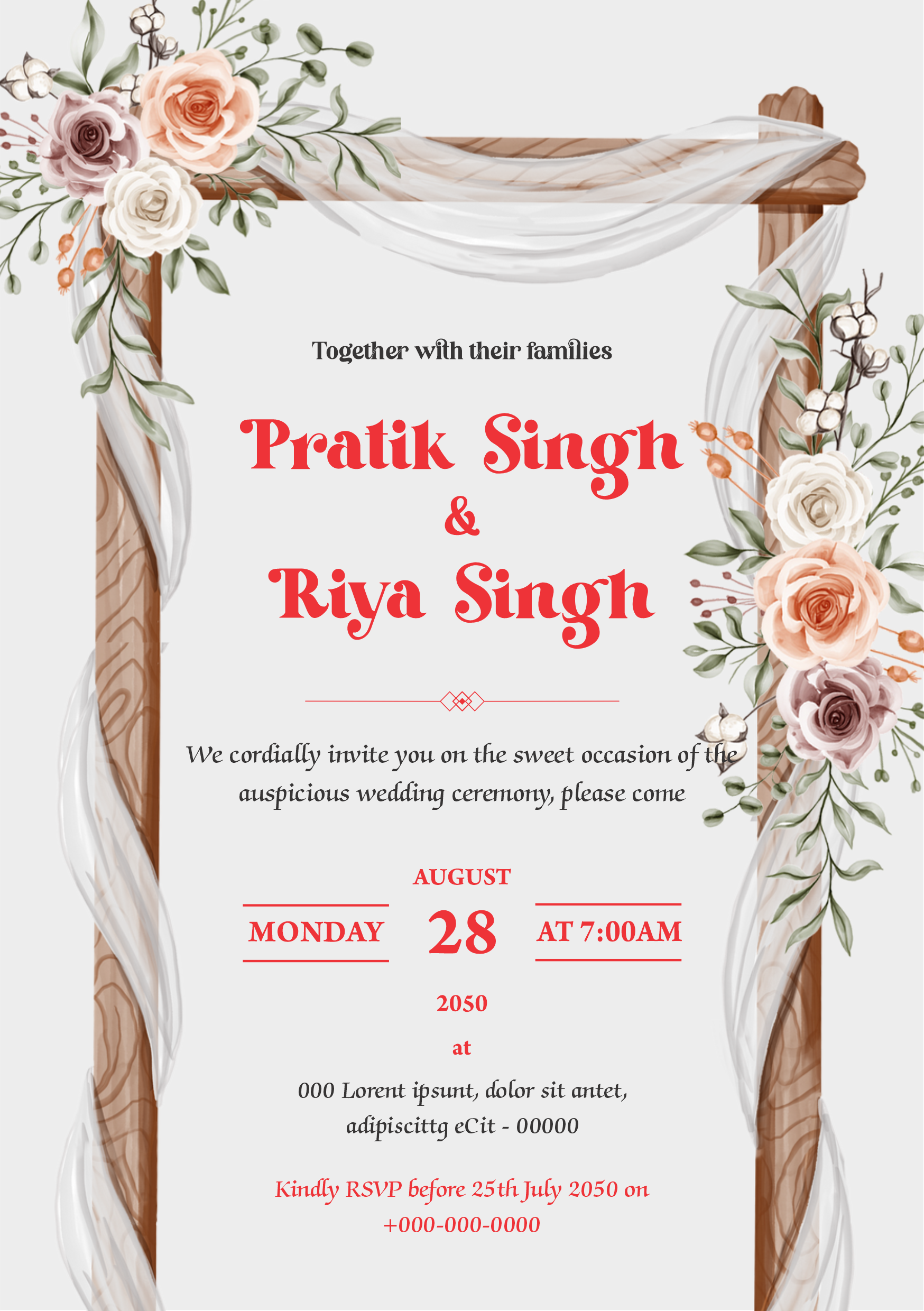 We provide a professionally designed Wedding Invitation Card that you can fully customize as per your preference. Whether you want a traditional, royal, floral, minimalist, modern, or luxury-themed invitation, we create an elegant, beautiful and high-impact design tailored perfectly for your special day.